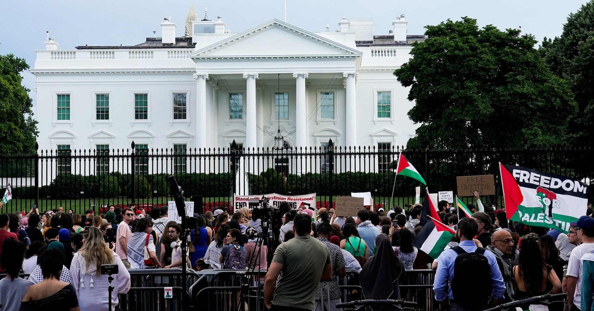 Protesters spray-painted “Hamas is Coming” on it, and replaced U.S. flags with Palestinian flags. All Israel News