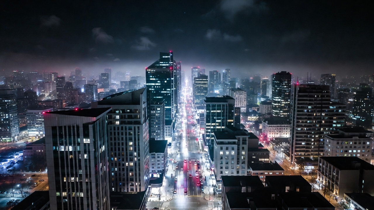 A city can remain visible from space, lights intact, buildings untouched — while internally, its machines argue over what reality should be.